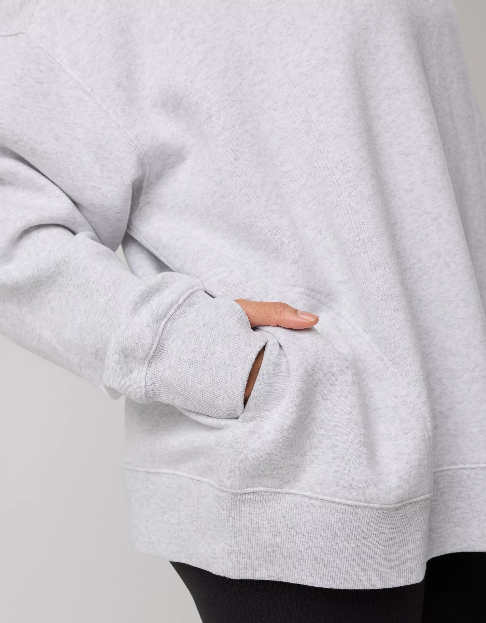 New oversized mockneck: A cozy, modern silhouette that keeps your neck warm without feeling bulky. Elevated basic. Thumbholes.