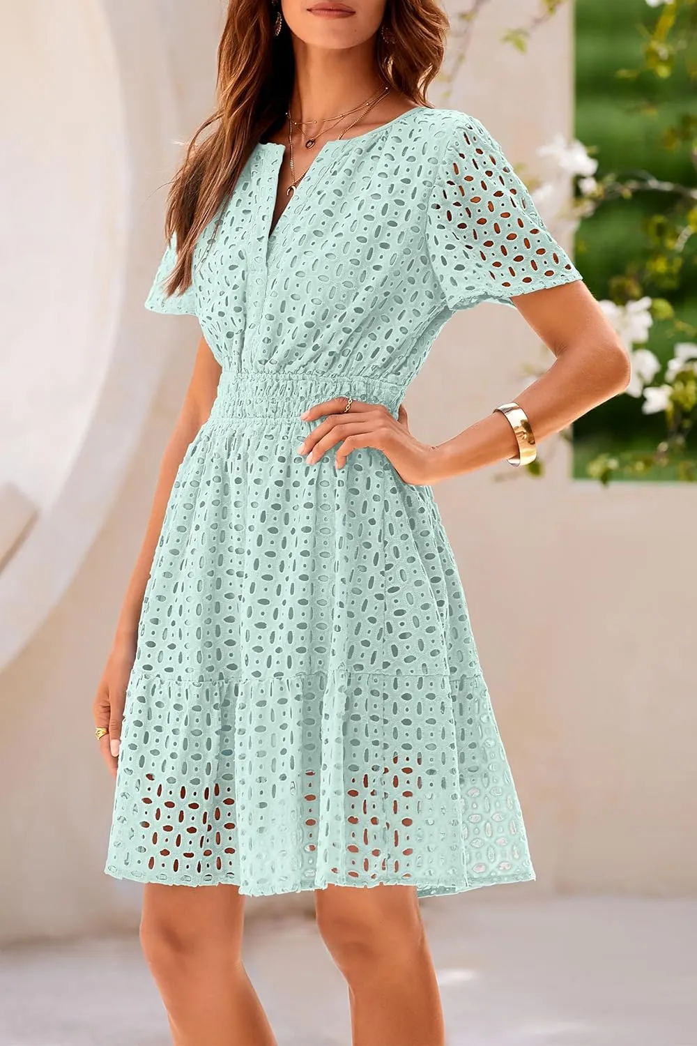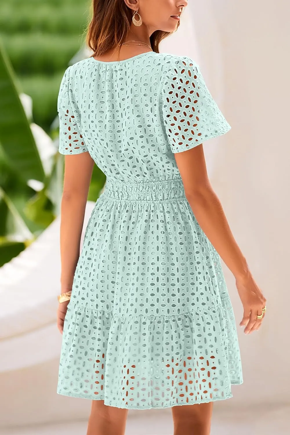 Last Day 50% OFF🔥🔥 Summer Hollow Out Lace Ruffle Beach Party Dress
