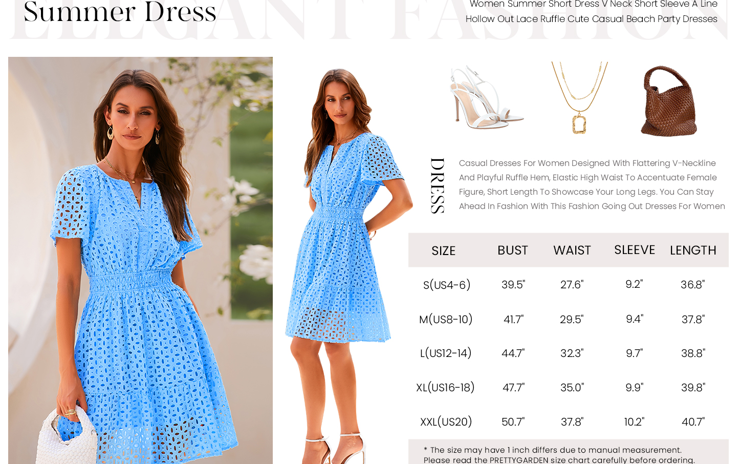 Lined Body: The body part of this dress is lined to avoid see-through while preserving the dress’s airy, feminine aesthetic.